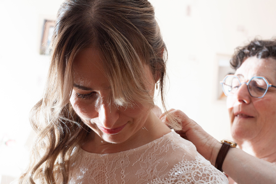 L’habillage, les mains qui s’affairent, les regards complices, les silences chargés d’émotion, les éclats de rire pour apaiser le trac… En tant que photographe de mariage, je capture ces scènes authentiques qui racontent le début de votre journée, avec douceur et sensibilité.