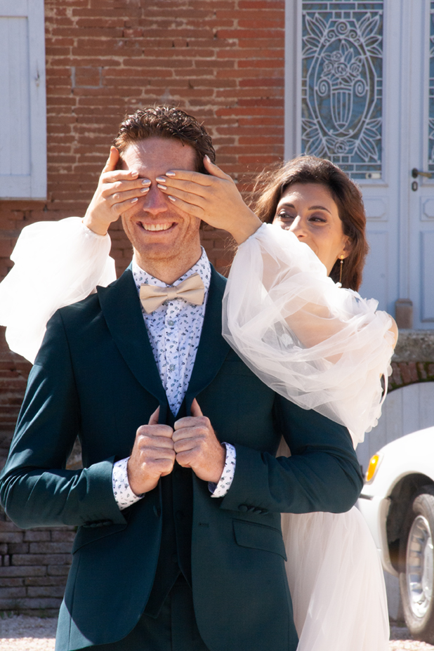 C’est le tout premier regard : celui où le futur marié découvre sa moitié, transformée, lumineuse, comme une véritable métamorphose.